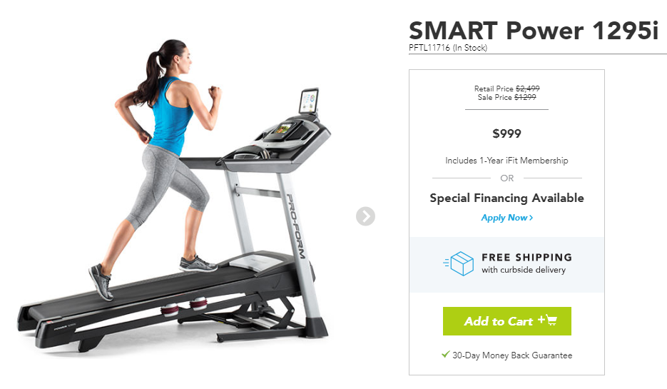 To help you see how the sale stacks, take the ProForm Power 1295i treadmill for example. This treadmill has the MSRP of $2,499, though it is often listed on ProForm for $1,299. However, for the Labor Day Extended Sale, the Power 1295i has been reduced to $999.